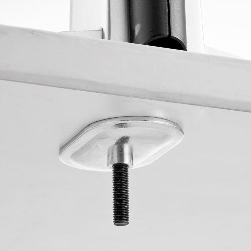 クランプ式は、デスクの天板を上下から挟み込んで固定するタイプです。デスクに穴を開ける必要がなく、手軽に設置できるのが魅力。デスクを傷付けたくない方に適しています。