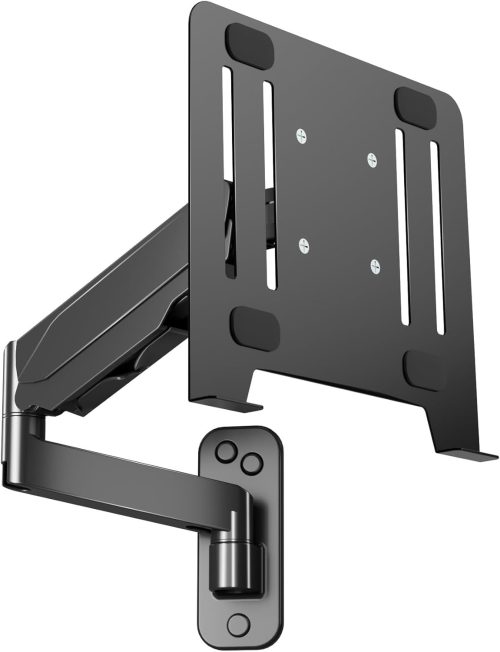 デスク上をすっきりと整理できる壁掛け式ノートパソコン用モニターアーム。17インチまでのノートパソコンに対応し、VESA規格の75×75mmと100×100mmに準拠しています。耐荷重は1~8kgで、幅広いモデルで使用可能です。