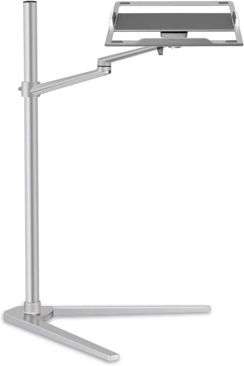 スタンド型のモニタースタンド。自立式のため、好きな場所へ自由に移動させて使用できます。4.7~12.9インチ対応のタブレットホルダーが付属しており、スプリング式で幅12.7~21.5cmまで調整できます。耐荷重3kgでノートパソコンも安定して設置できる仕様です。