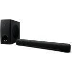 2ウェイ4スピーカーのサウンドバーとワイヤレスサブウーファーで構成されたサウンドバー。Dolby DigitalやDTSに対応し、バーチャルサラウンド技術で映画や音楽を臨場感豊かに再生します。高さ54mmの薄型設計でテレビのリモコン受光部を遮らず、視聴環境を損なわないのが魅力です。