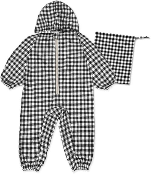 ロンパースタイプのレインコートは、頭から足元まですっぽり覆う上下一体型のデザインです。全身をカバーでき、どの方向から雨が降っても濡れにくいのが魅力。動き回っても脱げにくいため、未就学児の雨の日対策に適しています。
