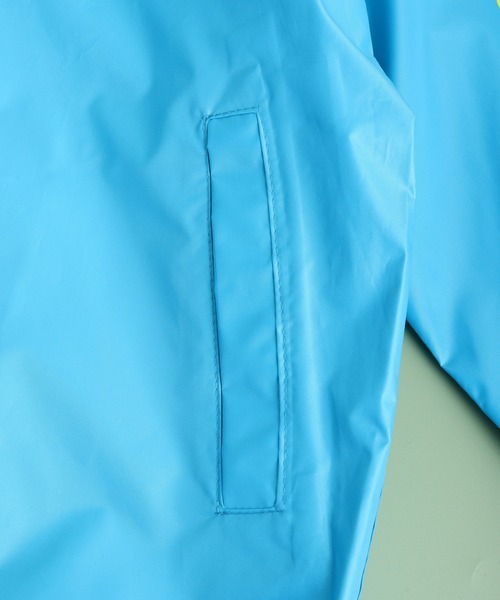 丈夫でやわらかいナイロンタフタ素材に撥水加工を施しているのが特徴。雨を弾きながら、快適な着用感も実現しています。袖口はゴム仕様で、手口から雨が入り込みにくいのもポイントです。