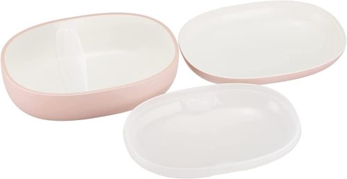 スリムで持ち運びやすい2段式の女性向け弁当箱。奥行き6.5cmの細身設計で、小さめのバッグにもすっきり収まるのが特徴です。丸みのあるフォルムで内側に角がないため、洗いやすさも兼ね備えています。2段合わせて600mlの容量で、扱いやすいサイズ感が魅力です。