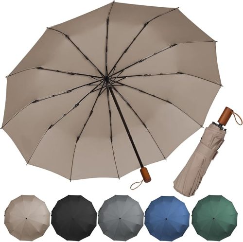 16本のグラスファイバー骨が、風の強い日でも頼れる耐風性を実現。高密度生地の高い撥水力で雨粒を弾き、軽く振るだけで水滴がオフできます。握りやすいグリップも搭載。快適な使用感を求める方におすすめです。