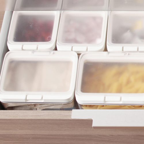 湿気を遮断する高気密設計の保存容器。独自のフタ構造により、粉類などの湿気による劣化を防ぎ、食品の鮮度と美味しさを長期間キープします。中身の品質を保つことで、無駄にすることなく活用できます。
