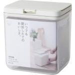 透明な本体で中身の残量が一目で確認でき、補充のタイミングを把握しやすいのが魅力。フタのパッキンには滑り止め効果があり、複数重ねて使用する際も安定感があります。サイズは幅16×奥行16×高さ22cm。スタッキング可能で収納しやすく、キッチンの整理整頓におすすめの製品です。