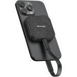 MagSafe対応のマグネット式で、iPhoneの背面に直接装着できる外付けSSD。ケーブルが本体に一体化されており、持ち運び時に便利です。L字形状のUSB Type-Cコネクターを採用し、装着時に邪魔になりにくい設計に仕上がっています。