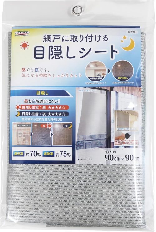 サイズは90×90cm。時間帯を問わず室内の目隠しができる網戸目隠しシートを探している方におすすめです。