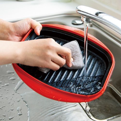 フッ素樹脂コーティング加工で焦げつきにくく、汚れてもスルッと落ちてお手入れは簡単。本体の丸洗いが可能なため、毎日の調理で気軽に使えます。時間を有効活用したい方におすすめのアイテムです。