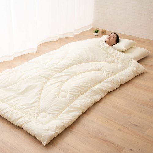掛け布団には中空ポリエステルをたっぷり使用しているので、やわらかい掛け心地を味わるのが特徴。敷き布団は3層構造を採用しており、床にもベッドにも対応しています。枕にはくぼみを設けて、頭部のカーブに沿ってしっかり支えられるのがメリットです。