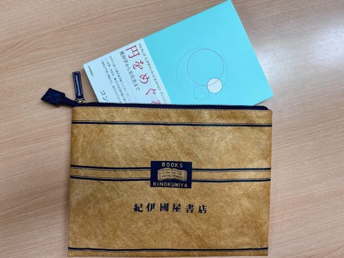 創業100周年を記念して作られた紀伊國屋書店のオリジナルブックポーチ。伝統的な紙手提げ袋をモチーフにした懐かしくも上品なデザインが印象的です。マチなしのスリムな形状で、カバンの中でもかさばりにくく持ち運びやすいのが魅力です。