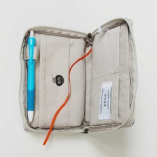 サイズは幅120×高さ160×奥行き250mmで、幅105×高さ148mmの文庫本に対応。ダブルファスナーでスムーズに開閉できます。内側には2つのポケットとペンループ、しおり紐を搭載し、読書に必要な小物も一緒に整理可能。実用性を重視する方にもおすすめのブックポーチです。