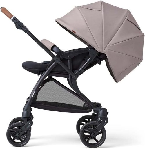 117〜150°まで細かく調整できるリクライニング機能付きで、赤ちゃんの成長や状況に応じて角度を設定可能。全輪に搭載されたサスペンションが路面からの振動を吸収し、快適な乗り心地を提供します。