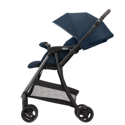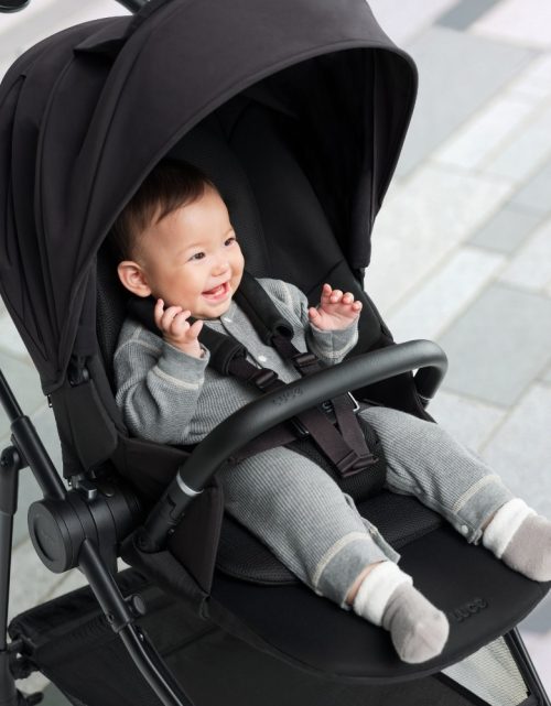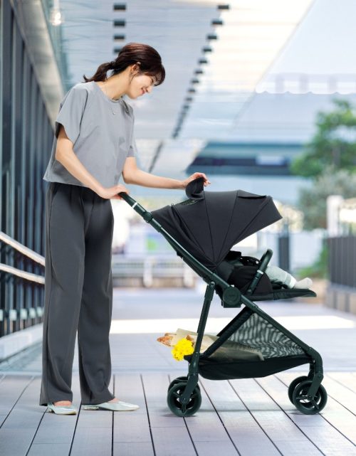 日本の気候を考慮した特別仕様として、背面とサンシェードにメッシュウィンドウを搭載。蒸し暑い天候下でも優れた通気性を発揮します。4段階のシートリクライニングと2段階調節可能なレッグレストで、赤ちゃんの乗り心地も快適です。