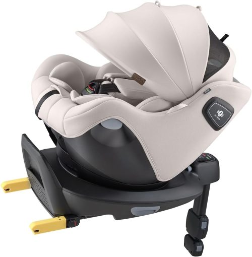 360°回転機能を備えており、赤ちゃんの乗せ降ろしがスムーズに行えます。3Dメッシュシートと通気孔を採用したエアスルーシステムにより、体温調節が苦手な赤ちゃんの快適性を確保。サンシェード付きで、車内での日差し対策に役立ちます。