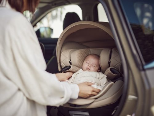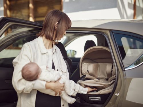 首がすわる前の新生児は、両手でしっかりと抱っこする必要があります。チャイルドシートに乗せ降ろしする際に両手が塞がってしまうので、座面をドア側に向けられる回転機能があると便利。無理な体勢にならず、車の外からスムーズに乗せ降ろし可能です。