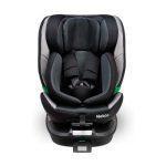 フルリクライニング機能を備えた新生児向けチャイルドシート。生まれたばかりの赤ちゃんの未熟な首と頭を守り、呼吸しやすい姿勢をサポートするフラットなベッド構造が特徴。最新の安全基準R129に適合し、前後に加えて側面からの衝撃にも対応しています。