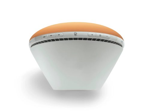 太陽の昇るサマを模した仿生デザインを採用した光目覚まし時計。光・音・光+音の3種類のモーニングコール方式を採用しているのが特徴です。心地よい自然音と共に光が徐々に明るくなる日の出モードを搭載しています。