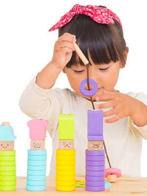 遊びを通して、自然と集中する力が養われるのもポイント。最初は、大きめのビーズを使った紐通しのように、簡単なモノから始めるのがおすすめです。達成感を得やすく、子供が夢中になって遊べます。