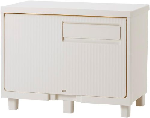 下扉は玄関や設置場所にあわせて開閉方向を選べる両開き構造です。押すだけで施錠できるプッシュ式シリンダー錠を採用し、防犯性と操作性を両立。届いた日から使える手軽さもポイントです。