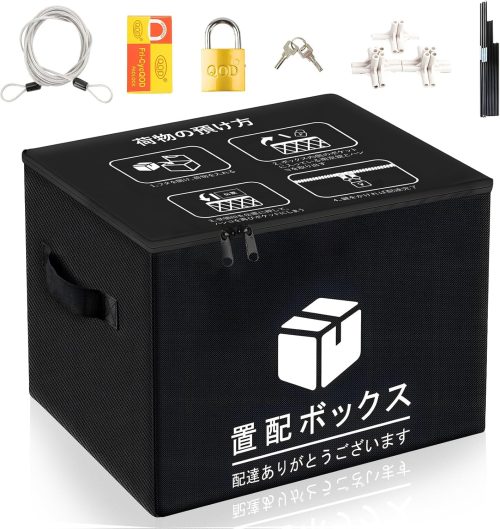 防水仕様で、雨の日でも荷物をしっかり守れるのがポイント。また、配達員がスムーズに投函できるよう、案内ステッカーが付属しています。盗難防止機能があり、大切な荷物を安全に保管可能です。