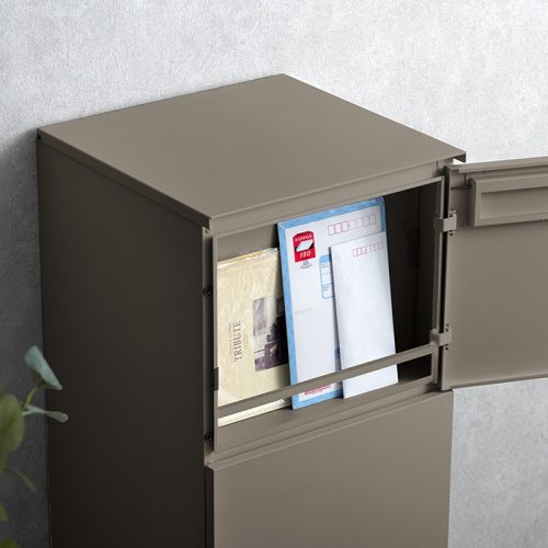 複数の投函口が付いているポスト一体型の宅配ボックスです。上部投函口・メールボックス・宅配ボックスの3つの投函口を備え、郵便物から大型荷物まで一箇所で受け取れるのが魅力。亜鉛メッキ加工スチールにアウトドア粉体塗装を施した、サビに強い仕様です。