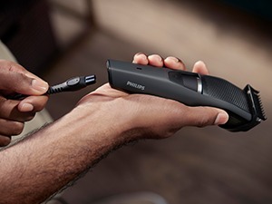 フィリップスの「リフト&トリミングシステム」を搭載しているヒゲトリマーです。ヒゲを根元から引き上げてカットできるのが特徴。適切な位置にガイドしてからカットするので、ムラを抑えて均一に仕上げられます。