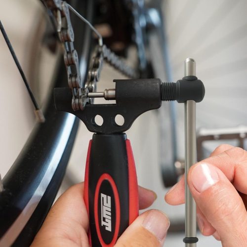 また、チェーンを切断するだけでなく、切断後にピンを圧入して再びつなぎ合わせることも可能。自分でチェーンのメンテナンスを行う際に作業がスムーズに進む便利なアイテムです。
