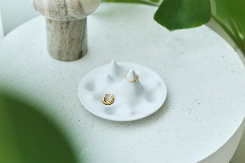 毎日のちょっとした瞬間を、美しく整えてくれるアクセサリートレイ「Oase」。日本庭園から着想を得た曲線美が、アクセサリーをやさしく包み込み、使っていない時もオブジェのように空間を彩ります。海水由来のミネラルを含むサステナブル素材でつくられ、抗菌性や割れにくさも兼ね備えています。