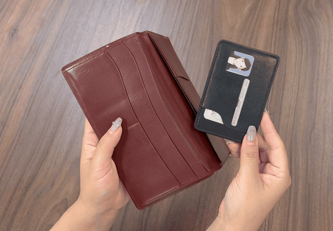 「hide me」は、コンパクトサイズながら、複数枚のカードを効率よく収納できる設計。最大で6ポケット収納可能で、手続きなどに必要なカードをスリムにまとめられます。