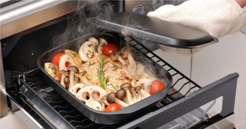 余分な脂を落としてヘルシーに仕上がるのもおすすめのポイント。直火やIH、オーブンなどさまざまな熱源に対応しており、食卓へそのまま出せるデザインも魅力です。