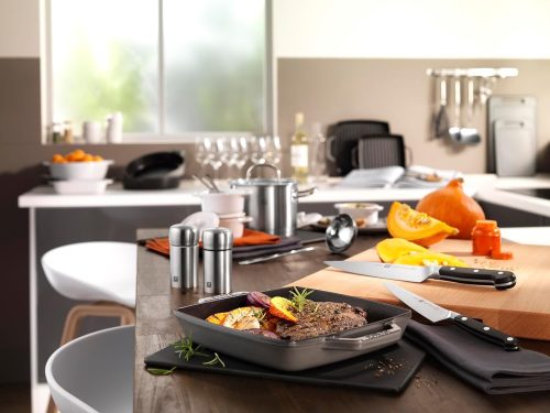 魚焼きフライパンは、グリルパンやピュアグリルといったラインナップを用意。山型の溝が余分な油を落としながら美しい焼き目をつけ、蓋を使えばスチーム調理も可能です。肉や魚をパサつかせずしっとり焼き上げられるため、本格志向の方におすすめです。
