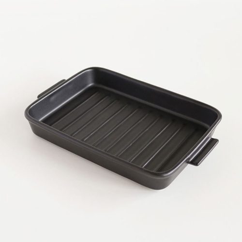 約幅185×奥行255×50mmの薄型設計で、魚焼きグリルにも入れやすいのが特徴。日本製で直火やオーブン、電子レンジと幅広く対応し、そのまま食卓に出せるのも魅力。日々の調理を効率よく進めたい方におすすめです。