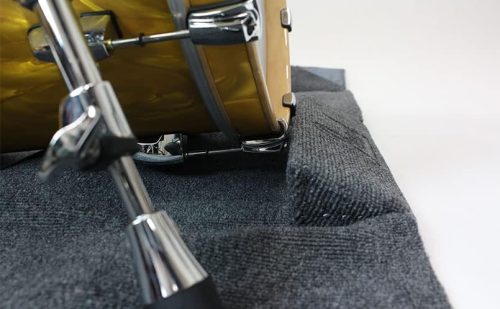 ドラムマットを選ぶときは、まずサイズをチェックすることが重要です。ドラムセット全体がマットの上にしっかりと収まる大きさのモノを選びましょう。マットが小さいとスタンドやペダルの一部が床に直接触れてしまい、振動や音が伝わりやすくなり、防音効果が十分に発揮されません。