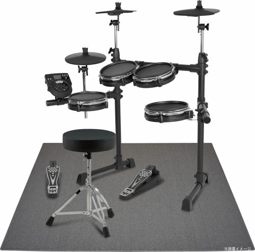 自宅での電子ドラム演奏をもっと快適にするセッティングマット。V-Drumsの演奏時に床へ伝わる振動を軽減する専用設計が特徴です。周囲を気にせず、自分のプレーに集中できます。