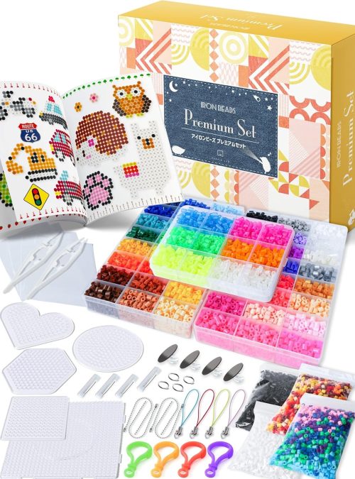 すぐに創作活動をはじめられる手軽さがメリット。白黒補充用ビーズが各500粒含まれており、よく使う色が足りなくなる心配を軽減できます。豊富な色数で多彩な表現が可能なため、アイロンビーズをはじめたい方や親子で創作したい方におすすめです。