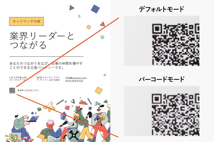たとえば、新たに搭載された「バーコードモード(※)」は、これまでつぶれやすかったQRコードを含め1次元バーコード、2次元バーコードを精細に印刷可能。読み取り精度が高くなり、イベントの案内状や地図入りの資料、販促物なども自宅で手軽にきれいに作成可能です。