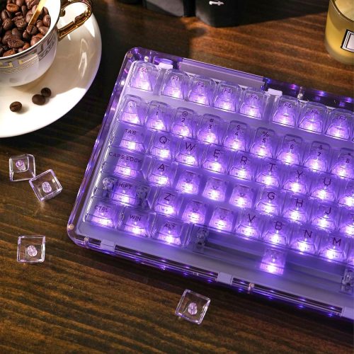 透明アクリル素材で内部構造が見える、おしゃれなメカニカルキーボード。RGBライティングがクリアボディ全体を照らし、デスクに鮮やかな彩りを添えます。98キー配列でテンキーを搭載しながらもコンパクトに設計されており、データ入力や作業効率を求める方に便利です。