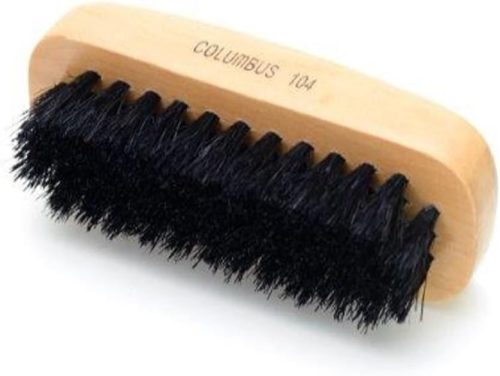 起毛革のブラッシングに適した柄付きタイプのブラシです。豚毛100%を採用。コシのある毛質で、スエードやヌバックなどの起毛部分に挟まったホコリをかき出します。