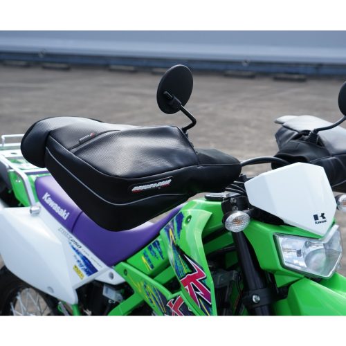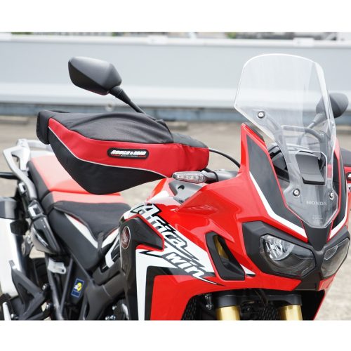 オフロード車からスーパースポーツまで幅広く装着できるハンドルカバー。4重フラップ構造により、風や寒さを遮ります。ハンドガード装着車にも対応可能。装着時の操作性は良好です。