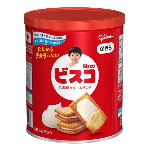 製造後5年6か月の長期保存ができる、非常食におすすめのお菓子です。「GCL1815乳酸菌」と「スポロ乳酸菌」の2種類を配合しているのが特徴。サクッとした食感のビスケットに、ミルクのやさしい甘さを楽しめるクリームをサンドしているのがポイントです。