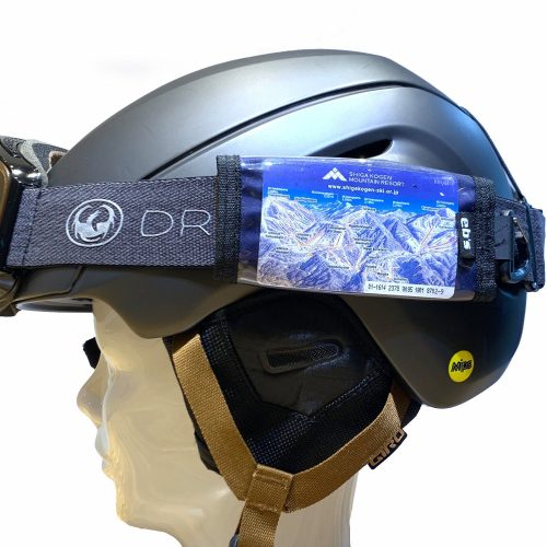 ゴーグルのベルト部分に巻きつけて装着するタイプのパスケースです。ヘルメットを着用しているときでも問題なく使えるのがポイント。頭部に装着するため、滑走中に邪魔になることがありません。