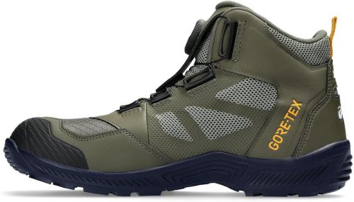 防水透湿性を備えたゴアテックスファブリクス採用の安全靴。雨天時でも水の侵入を防ぎながら内部の汗による水蒸気を外に放出し、足元をドライに保ちます。BOAフィットシステムのL+1ダイヤルで、ワンタッチで細かなフィット調整が可能です。