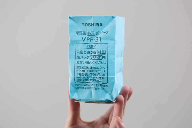 TOSHIBA トルネオコードレス VC-CLP54の専用紙パック「VPF-31」は、集塵部の形に合わせてすみずみまでキューブ状に膨らむ設計です。