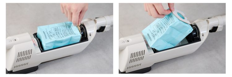 サイクロン掃除機のようにダストカップを洗浄・乾燥させる必要がなく、お手入れの手間がほとんどかからないのも大きなメリット。交換後は新しいパックを差し込むだけでセット完了するため、初めてでも迷わず扱えます。