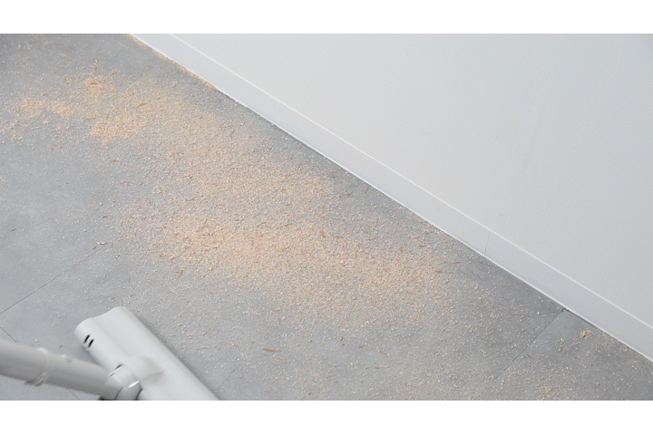 手元の動きにしっかりとヘッドが連動して動くので、テーブルや椅子の脚まわりなど、入り組んだ場所でも自在に動かせる軽快さもポイント。実際に使用してみた際、力を入れなくても方向転換が非常にスムーズにでき、吸い残しを感じることはほとんどありませんでした。