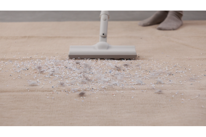 強力吸引と組み合わせることで、絨毯やカーペットに散らばった髪の毛や細かいゴミも効率よく取り除け、掃除の手を止めずに家全体をスムーズに清掃できます。さらに、ブラシは抗菌仕様で清潔に使えるのも魅力です。