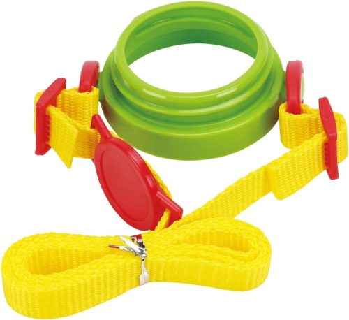 フタはワンタッチで開閉でき、ロックリング付きで漏れにくい設計。容量は410mlで、2歳頃の子供でも扱いやすいサイズ感です。長さ調節可能なベルトがあるので、肩からかけたり、ベビーカーに引っかけたりできます。