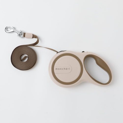 握りやすさと操作性を追求した伸縮リード。ボタンひとつでリードの長さを固定でき、もう一度押すと自動巻き取りに切り替わる仕様です。ハンドルの内側には滑りにくい素材を採用しており、しっかりと握れます。