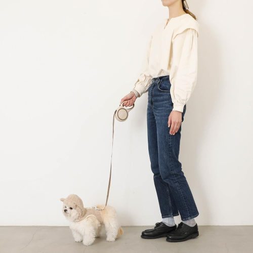 カバーを付け替えて楽しめる犬用伸縮リード。ワンクリックでカバー交換が可能で、愛犬のアクセサリーに合わせてコーディネートできるのが魅力です。街での散歩から郊外へのお出かけまで、シーンに合わせたスタイリングを楽しめます。